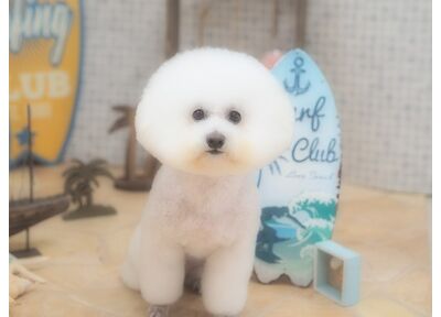 • 仙台市のトリミングサロン ポメラニアンとビションフリーゼのMIXの琥珀くんです ;;;