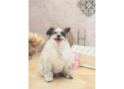 • 仙台市のトリミングサロン パピヨンとマルチーズのMIXのミクサくんです ;;